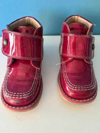 Botas de charol de la marca Pablosky en talla 26. - Exterior de charol brillante. - Cierre con dos velcros. - Detalle de pespuntes decorativos. PRECIO NO NEGOCIABLE A RECOGER EN NAVATEJERA