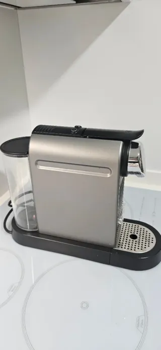 Cafetera Nespresso de la marca Krups en color gris. Diseño moderno y compacto. - Depósito de agua transparente. - Bandeja recogegotas extraíble. - Acabado metálico. Tiene desperfecto en pieza de plastico que no afecta a su uso.