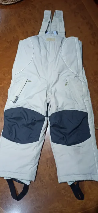 Mono de nieve para niño de 3 años. Ideal para mantener a los más pequeños abrigados y secos. - Color beige con detalles en negro. - Tirantes ajustables. - Bolsillos laterales. - Con cremalleras a los laterales para facilitar la puesta.