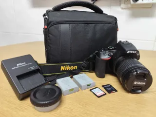 El pack incluye todo lo necesario para empezar a disparar: Cuerpo Nikon D5600 (impecable, sin marcas de uso). Objetivo AF-P DX 18-55mm f/3.5-5.6G VR (la versión más moderna y silenciosa con estabilizador). 2 Baterías originales Nikon (ideal para viajes o sesiones largas). Cargador de batería original MH-24. Tarjeta de memoria SanDisk de 64GB + adaptador con tarjeta. Bolso de transporte acolchado con compartimentos. Correa original Nikon. SOLO TIENE 545 DISPAROS, estado excepcional!!