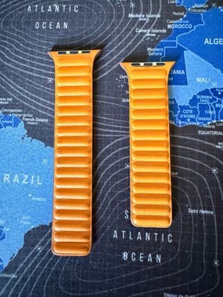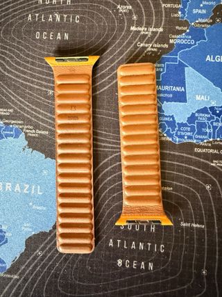 Correa Apple Watch original de cuero, color ocre Talla S/M Compatible con tamaños 42,44,45 y 49mm Ligeras marcas de uso, en perfecto estado Se vende por falta de uso