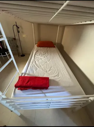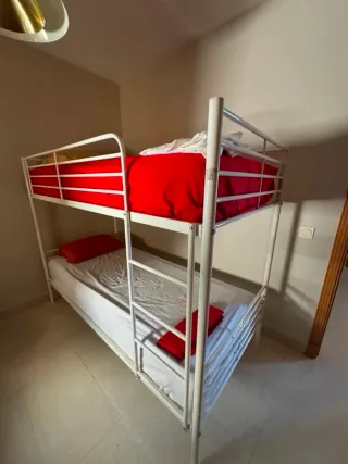 Litera metálica de color blanco, perfecta para optimizar el espacio. - Estructura robusta de metal. - Dos camas individuales. Solo litera,no incluye colchones. Esta desmontada,lista para recoger