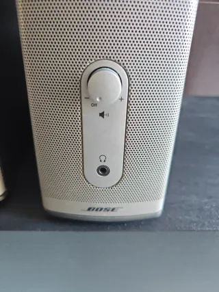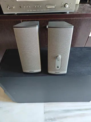 Altavoces Bose en color plata. Diseñados para ofrecer una experiencia de sonido clara y nítida. - Diseño elegante y compacto. - Rejilla protectora frontal.