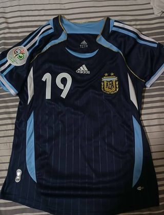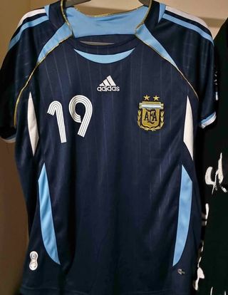 Camiseta de la selección argentina de fútbol, modelo de 2010. - Diseño con franjas verticales. - Escudo de la AFA bordado. - Logo de Adidas. - Parche de la Copa Mundial Alemania 2006.