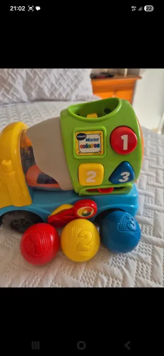 Divertida hormigonera de juguete VTech. - Incluye tres bolas de colores para insertar. - Botones con números y formas.