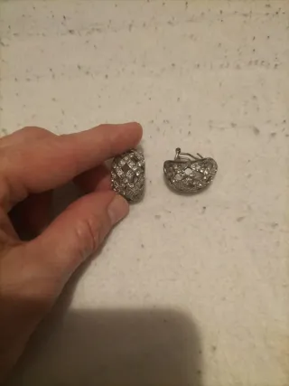 Elegantes pendientes con un diseño intrincado que recuerda a una red. - Acabado plateado brillante. - Detalle de pequeñas piedras incrustadas. - Cierre seguro para mayor comodidad.