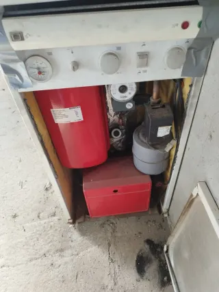 Caldera de la marca Roca Gavina en color rojo y blanco. Incluye un depósito de expansión. - Depósito de expansión de 10L. - Manómetro para control de presión.