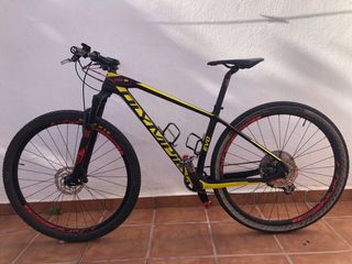 Bicicleta de montaña Olympia Evo con ruedas de 29 pulgadas. Talla M - Cuadro de carbono. - Horquilla delantera Rock Show Reba - Frenos de disco shimano - Cambio trasero sram gx eagle 12 velocidades. -Monoplato 34 dientes - Sillín deportivo. - Portabidones. -Ruedas X-Feel.