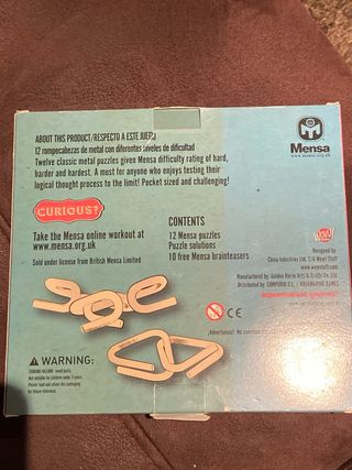 Set de 12 puzzles metálicos de la colección Mensa. - Diseños variados para ejercitar la mente. - Fabricados en metal.