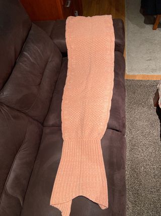 Manta con diseño de cola de sirena, perfecta para acurrucarse. - Tejido suave y cómodo. - Color salmón. - Diseño de escamas y aletas.