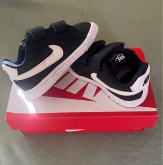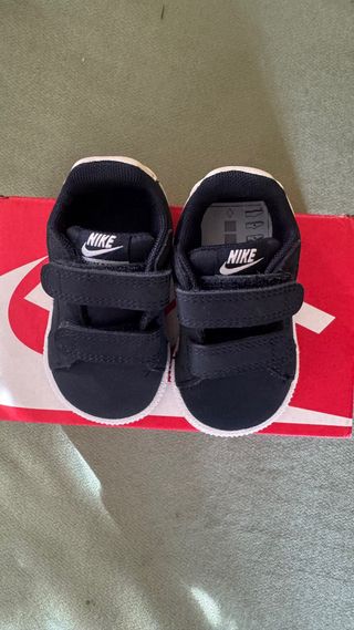 Zapatillas deportivas Nike para bebé. - Talla 18.5 - Sin estrenar, en embalaje original - Color azul marino. - Cierre de velcro. - Suela blanca.