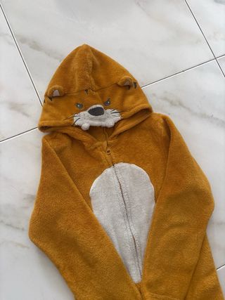 Pijama entero con capucha, ideal para estar cómodo en casa. Su diseño divertido te hará sentir genial. - Material suave y cálido. - Cierre frontal con cremallera. - Detalle de cara y orejas en la capucha.
