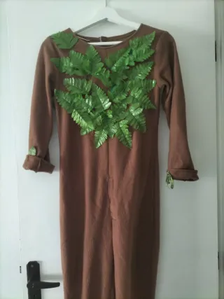 Disfraz de árbol para niños, ideal para obras de teatro o fiestas. - Talla 8/10. - Diseño marrón con hojas verdes. - Mangas largas y pantalón.