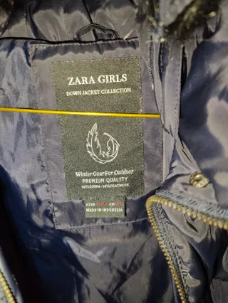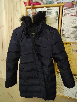 Cazadora de invierno de Zara para niña. - Color azul marino. - Capucha con pelo. - Cierre de cremallera y botones. - Bolsillos laterales.