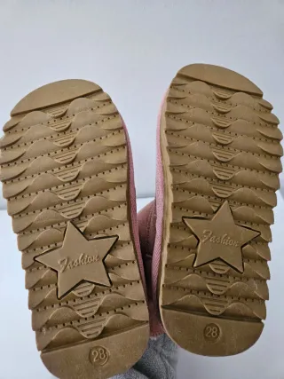 Botas para niña en talla 28. El diseño de la suela incluye estrellas con la palabra Fashion y el número de talla. - Suela con relieve. - Detalle de estrella. - Número de talla 28.