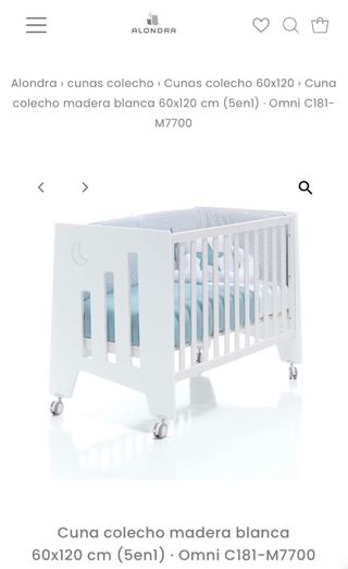 Cuna colecho de madera blanca de la marca Alondra, modelo Omni C181-M7700. - Medidas: 60x120 cm. - Diseño de 5 en 1. - Incluye ruedas para facilitar su movilidad, COLCHÓN y CHICHONERAS
