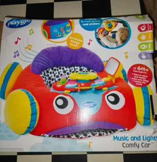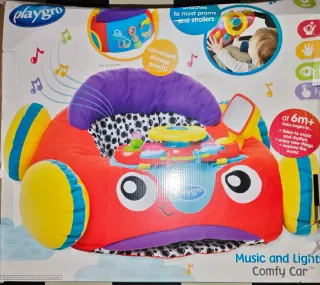 Coche de actividades Playgro para bebés a partir de 6 meses. Fomenta la escucha de música y el descubrimiento. - Se adapta a la mayoría de carritos y sillas de paseo. - Incluye un práctico bolsillo de almacenamiento. - Diseñado para estimular al bebé con música y luces.