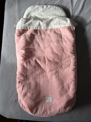 Saco para silla de bebé en color rosa, ideal para mantener al pequeño abrigado. - Diseño acolchado. - Detalle de encaje central.