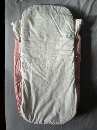 Saco para capazo en color rosa con un suave estampado de topos y detalles florales en la parte superior. - Tejido exterior texturizado. - Forro interior de algodón. - Cierre con cremallera. - Detalle de etiqueta de marca.