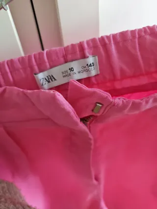 Pantalón ancho de Zara en color rosa. - Talla 10 (equivalente a 140 cm). - Diseño de pierna ancha. - Cintura elástica.