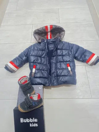 LOTE PLUMIFERO MAYORAL AZUL MARINO+ BOTINES TALLA 19 NIÑO/A -Chaqueta plumífero en azul marino con detalles de rayas en blanco rojo y blanco. Talla 12 meses-80 cm.Talla grande, mí hijo lo puso con 2 años. Muy abrigado. -Botín respetuoso talla 19 (12 cm plantilla) de la marca Bubble kids. Están sin usar. Color azul marino y detalles en rojo. Cierre con velcro. #barefootshoes#numero19niño
