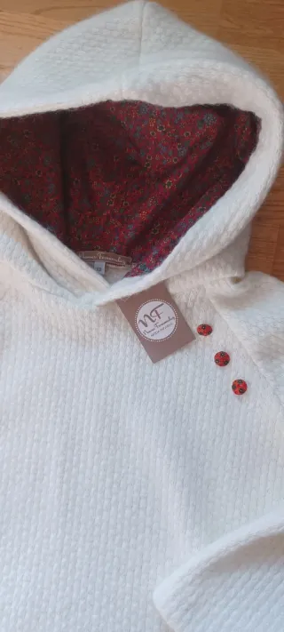 Jersey de punto Noma Fernandez con capucha. - Color blanco roto. - Detalle de botones en la manga. - Interior de la capucha con estampado. Nuevo con etiquetas,talla 12