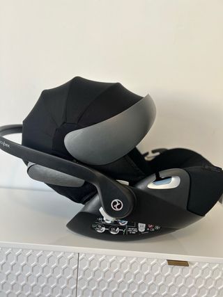 Silla de coche Cybex Platinum Cloud Q en color negro. Diseñada para la seguridad y comodidad del bebé. - Funda extraíble y lavable. - Asa de transporte ergonómica. - Indicador de airbag. Usada pero en buen estado. Se incluye funda para la lluvia, funda de algodón y adaptadores para carro bugaboo.