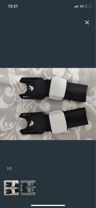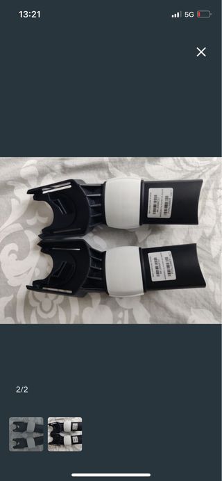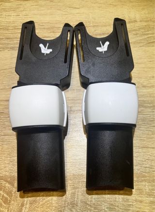 Se venden dos adaptadores para silla de coche Cybex Bugaboo Bee. Están en buen estado y son perfectos para acoplar la silla de coche al cochecito. - Incluyen dos adaptadores. - Son de color negro y blanco. - Se encuentran en buen estado.