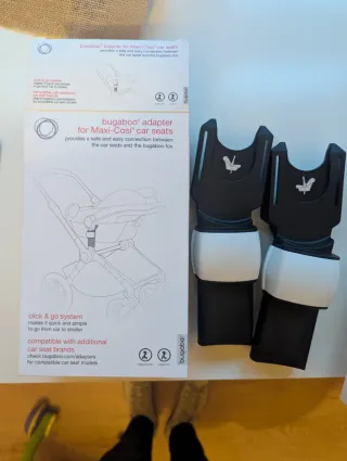 Adaptadores en buen estado para conectar sillas de coche Maxi-Cosi al chasis de tu Bugaboo Bee. Facilitan el sistema click & go para pasar del coche a la silla de paseo. - Diseñados para Bugaboo Bee, compatibles con: Bugaboo Bee (2010 model) Bugaboo Bee 3 Bugaboo Bee 5 Bugaboo Bee 6 - Compatibles con sillas de coche: Bugaboo Turtle Air by Nuna EU Bugaboo Turtle by Nuna EU Axkid Modukid Infant BeSafe iZi Go BeSafe iZi Go X1 Britax Römer Baby Safe isense Britax Römer Baby Safe3 i Size Cybex Aton M i-size Cybex Cloud Q Cybex Cloud Z i-size Kiddy Evoluna i-Size2 Kiddy Evolution Pro2 Maxi-Cosi Cabriofix Maxi-Cosi Cor - Incluyen caja
