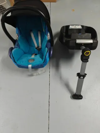 Maxi-Cosi con base Isofix para facilitar la instalación en el coche. - Silla de coche con diseño ergonómico. - Base con sistema Isofix. Se trata de una silla maxicosi con su base para el coche que se adapta a Isofix. La plataforma queda fija en el coche y la silla la puedes adaptar por ejemplo al carro Bugaboo y así no despiertas al bebe cuando lo sacas del coche. Es del grupo 0 y es el modelo cabriofix.Tiene también como se ve en la foto un toldito para q no le dé el sol o la luz.