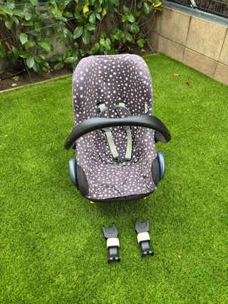 Se vende silla de coche Maxi-Cosi, en buen estado. Incluye un adaptador para cochecito Bugaboo y una base Isofix. - Válida para bebés y niños pequeños. - Se entrega tal cual se ve en las fotos. - Perfecta para viajes seguros y cómodos.