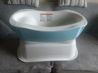 Bañera para bebé Tummy Tub, ideal para los primeros baños. Está en buen estado y es perfecta para que tu pequeño se sienta cómodo y seguro. - Excelente para calmar cólicos del lactante - Diseño ergonómico que se adapta al cuerpo del bebé. - Fácil de limpiar y mantener.