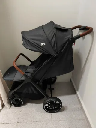Chasis de Aluminio: Estructura ligera y robusta con sistema de plegado compacto. Equipado con ruedas de gran durabilidad y suspensión integrada para un desplazamiento suave en entorno urbano. Unidad versátil que se adapta al crecimiento del lactante, permitiendo su uso como capazo rígido inicial y posteriormente como silla de paseo reversible. Silla de coche Arnés de 5 puntos con protectores acolchados. Bolso cambiador a juego y cesta inferior de gran capacidad. Textiles higienizados; sin roturas, manchas ni desgaste significativo en el manillar o ruedas.