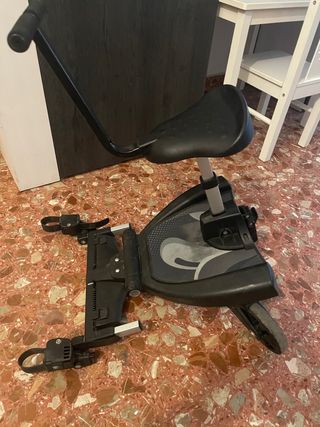 En perfectas condiciones, solo 2-3 usos y guardado en la caja original. Características principales: Diseño 2 en 1: Se puede usar con el asiento (con manillar y cinturón de seguridad) para que el niño vaya sentado, o quitar el asiento para que vaya de pie como una plataforma clásica. Seguridad máxima: Incluye cinturón de seguridad ajustable y superficie de la base antideslizante. Comodidad: Ruedas con amortiguación y giro suave para que no cueste maniobrar el carrito. Compatibilidad: Se adapta Se adapta a la gran mayoría de sillas de paseo y cochecitos gracias a sus brazos de anclaje ajustables. Capacidad: Soporta hasta 15 kg