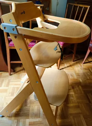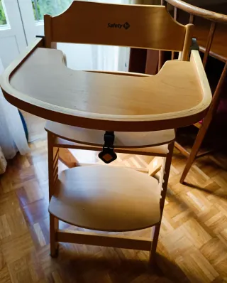 Trona evolutiva de madera de la marca Safety 1st. Se adapta al crecimiento del bebé. - regulable 4 alturas - Bandeja extraíble. - Arnés de seguridad. - Reposapiés.