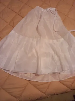 Falda bajera de tul para comunión. - Color blanco. - Cintura elástica con muchos ojales para adaptarlo a la medida deseada mediante un botón - Varios volantes para dar volumen.