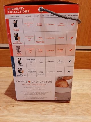 Mochila portabebés Ergobaby Adapt en color gris, ideal para recién nacidos hasta niños pequeños. Como nuevo, usado 5 veces. - Modelo: Adapt. - 3 posiciones de porteo. - Apta desde 3.2 kg hasta 20 kg.
