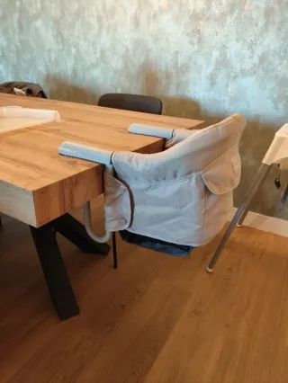 Asiento de mesa plegable de la marca Inglesina - Plegable y compacto (se puede llevar a todas partes y se adapta a cualquier mesa) - Incluye bandeja - Seguridad: se sujeta firmemente a la mesa e incluye correas de seguridad - Desenfundable y lavable a máquina - Color beige - Bolsa incorporada