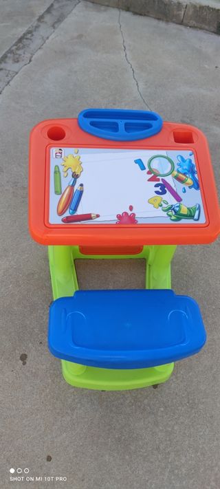 Pupitre de niñ@s extensible que se adapta al crecimiento, con cajón guarda objetos y la tapa se levanta para guardar cosas dentro, algunos signos de uso pero en perfecto estado