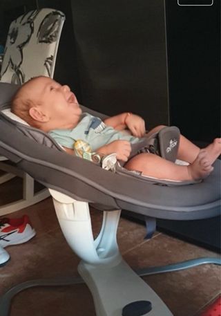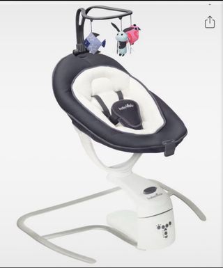 Hamaca de la marca Babymoov en muy buen estado, usada muy poco. - Color gris oscuro y blanco. - Incluye arco de juegos con peluches. - Arnés de seguridad de 5 puntos. - Detector de movimiento si el bebe se mueve - asiento giratorio con respaldo con 2 posiciones - temporizador - Con melodias y 2 tipos de balanceo