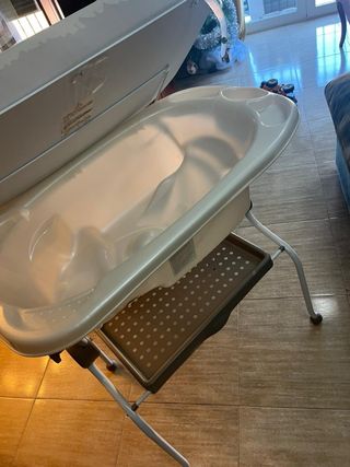 Práctica bañera y cambiador para bebés, ideal para el cuidado diario. - Diseño ergonómico para mayor comodidad. - Superficie fácil de limpiar. - Compartimentos para tener a mano los artículos de aseo.