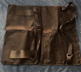 Accesorio para hacer más cómodo el viaje en avión para los niños. Permite extender el asiento. - Material: tela. - Color: negro. - Incluye correas ajustables.