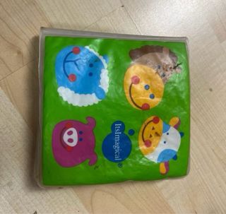 Lote de libros de peluche con temática de animales. - Diseño colorido con animales como elefantes, hipopótamos, cebras y leones. - Texturas variadas para estimular al bebé. - Incluye un aro de plástico para colgar.