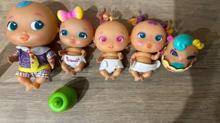 Lote de muñecos Bellies. Nunca jugaron con ellos. - Incluye 4 muñecos y una mascota. - Un biberón verde.