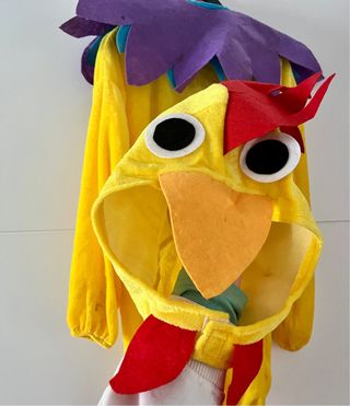 Disfraz de pollito amarillo para niños. Perfecto para fiestas o carnaval. - Diseño de pollito con capucha. - Colores vivos: amarillo, naranja y rojo. - Material suave y cómodo. - talla 3-4