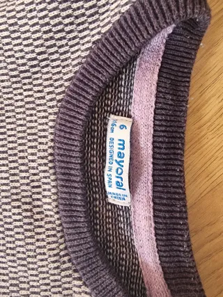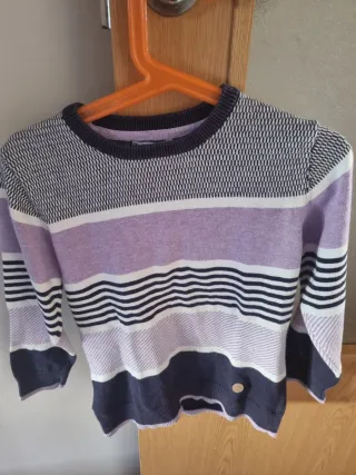 Jersey de punto para niño de la marca Mayoral. - Diseño a rayas en tonos lila, gris y blanco. - Cuello redondo y manga larga. - Detalle de logo en la parte inferior.