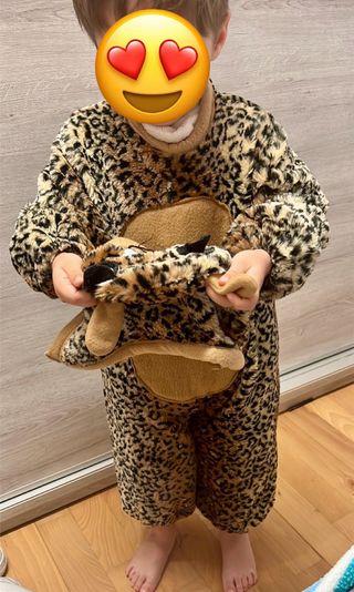 Disfraz de leopardo para bebé o niño pequeño. - Talla 1-2 años. - Diseño de animal print de leopardo. - Material suave y cómodo. - con patucos tb para forrar el zapato