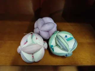 Conjunto de tres pelotas sensoriales de tela hechas a mano, ideales para el desarrollo infantil. El precio es individual: pelota morada, rosa, y verde. El diámetro de las pelotas es de 14cm.