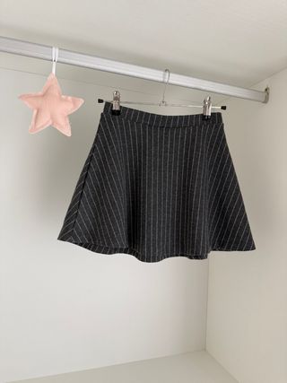 Falda de niña de la marca Lefties. - Talla 8. - Tipo evasé. - Diseño de rayas verticales grises y blancas.