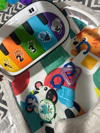 Tumbona para bebé con piano interactivo. - Piano con teclas de colores y figuras. - Arco con juguetes colgantes. - Cojín de soporte para la cabeza. -Solo esta usado el piano, lo demás es totalmente nuevo.